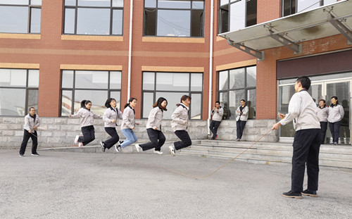 比賽中,隊員們精神抖擻、意氣風發(fā),伴隨跳繩擦過地面的清脆聲,盡情展現(xiàn)著輕盈風姿。大家配合默契,搖繩的隊員控制節(jié)奏,控制力道,跳繩的選手調節(jié)距離,調諧頻率,一鼓作氣,場下觀眾掌聲雷動,歡笑聲、加油助威聲此起彼伏,掀起了一波又一波比賽的高潮。